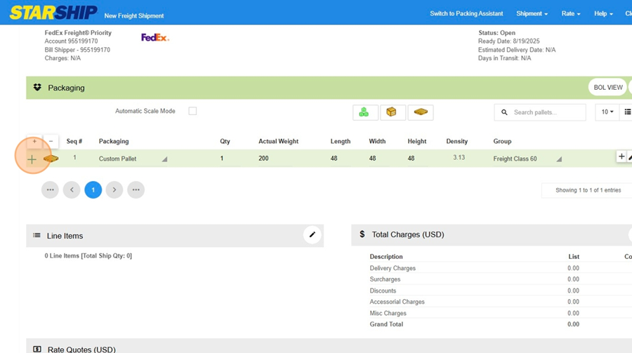- Starship will display rate quotes from all configured carriers for the entered shipment details.