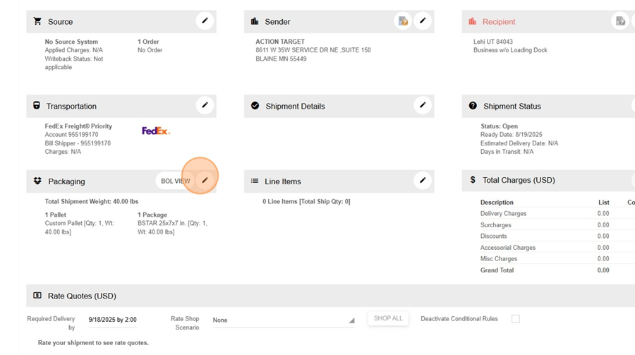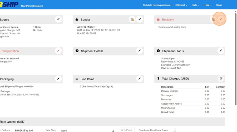 - Do **not** click “Ship” – as a rate quote user, this option will be disabled