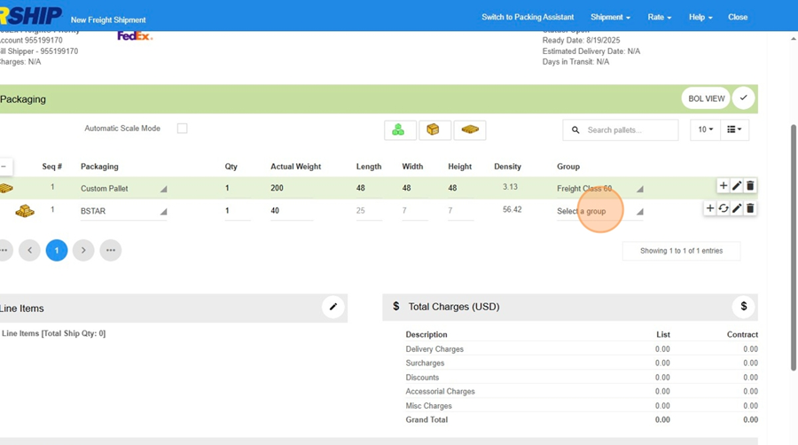 - For LTL: Enter the number of pallets, total weight, and dimensions (length, width, height).