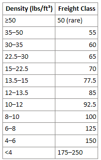 Choose the correct freight class