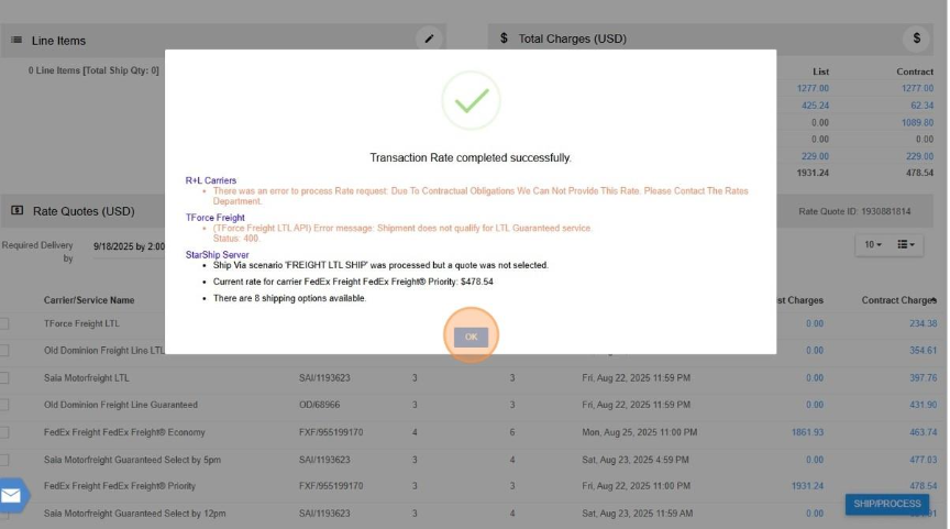 Create a Starship Shipment with FedEx Freight