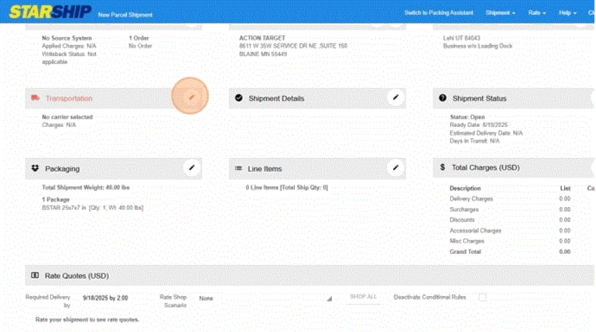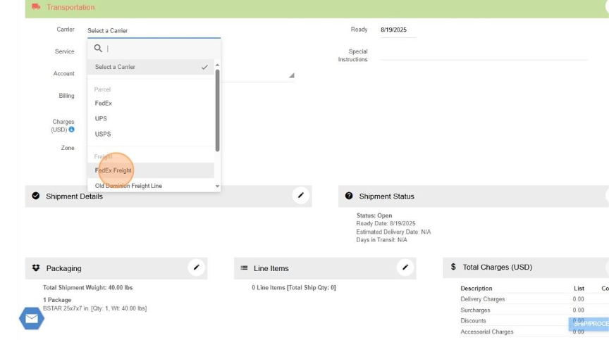 Create a Starship Shipment with FedEx Freight Page