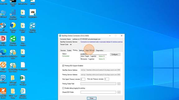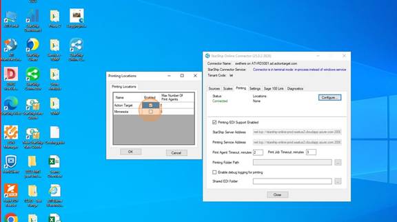 7. Once it looks like below with the location(s) and the Active showing, you are done here. DO NOT CLOSE the Connector. This MUST STAY OPEN while you are using Starship Cloud. It can be minimized.