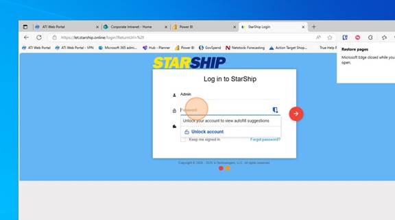 Log in with your Starship Cloud Username and Password. This should have been emailed to you.