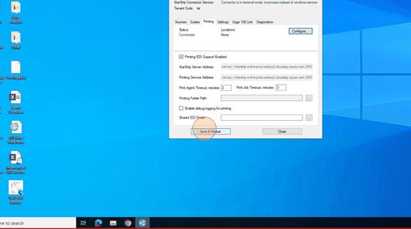 6. Click on "Save and Restart". Then wait until the Staus shows Connected and the location(s) are in there with Active next to them.