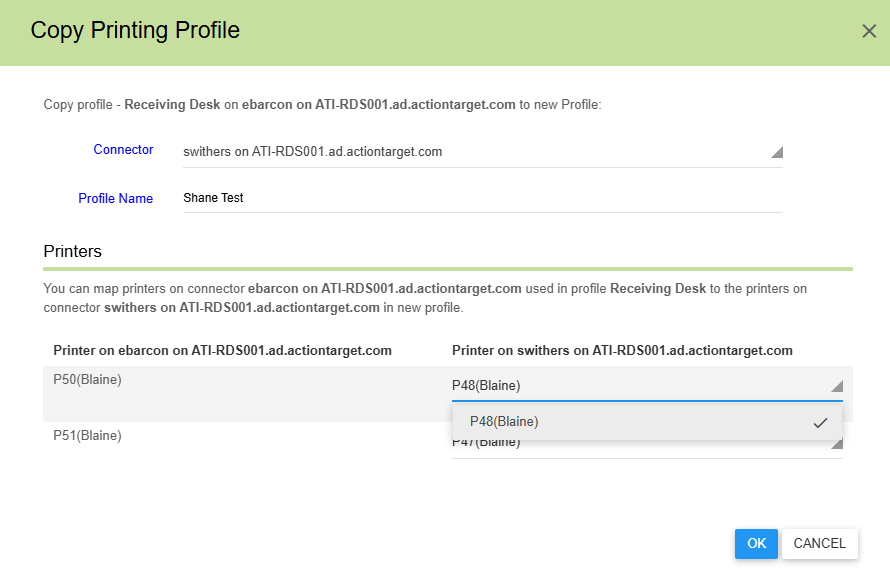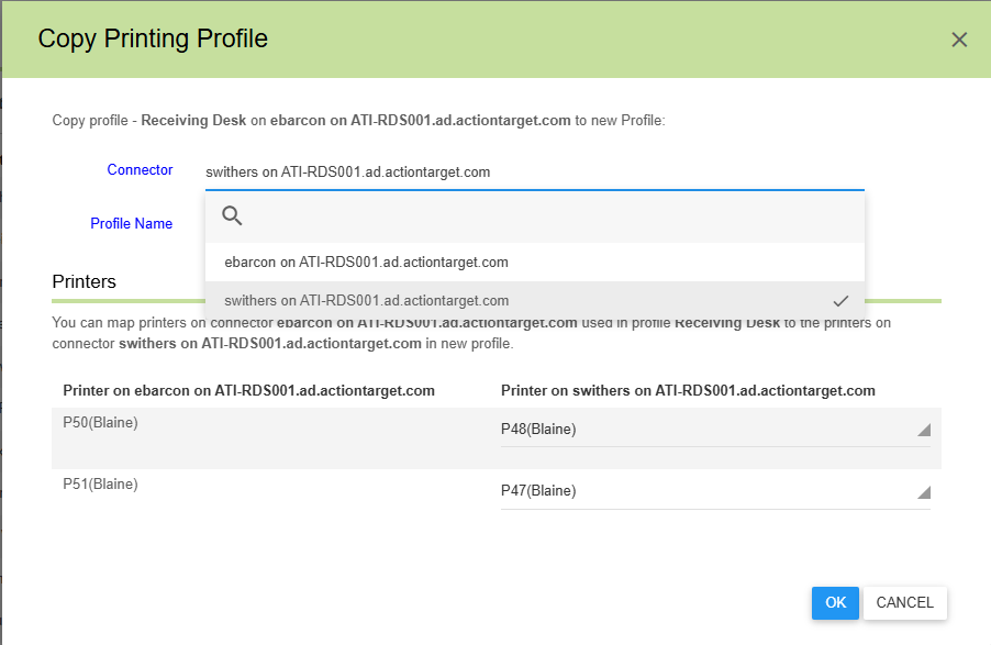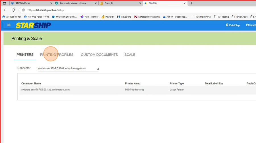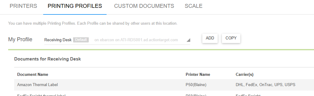 Printing Profiles are used to print the correct labels and paperwork for each of the different Shipping companies that we use. In Blaine, there are 2 main profiles, one for Truck lines and one for Parcel shipments, although each station can ship both.